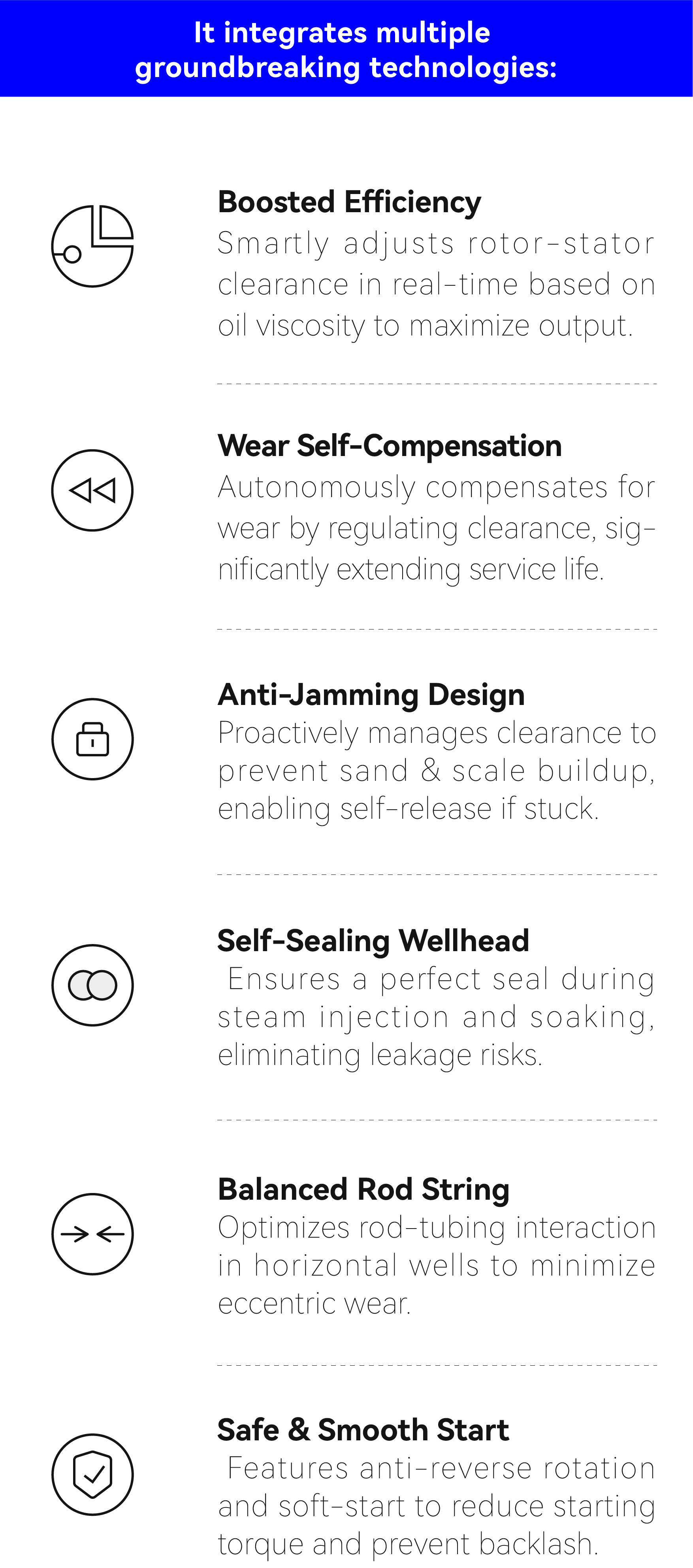 03. Looking Ahead: Ushering in a New Era for PCPs IntelliCPCP® represents a highly innovative and promising artificial lift technology. It precisely targets the technical shortcomings of conventional PCPs in challenging applications such as heavy oil recovery, horizontal wells, and thermal recovery. Its technical approach is sound in engineering logic and demonstrates clear advancement.